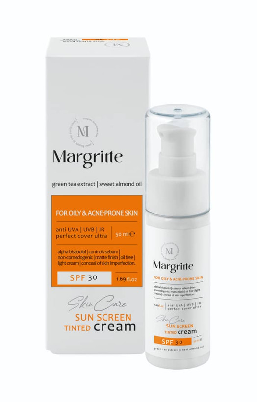 کرم ضد آفتاب مارگریت SPF30 حجم 50 میلی لیتر مناسب پوست چرب و مستعد آکنه